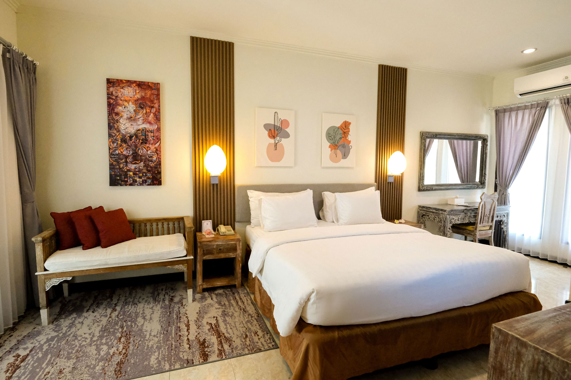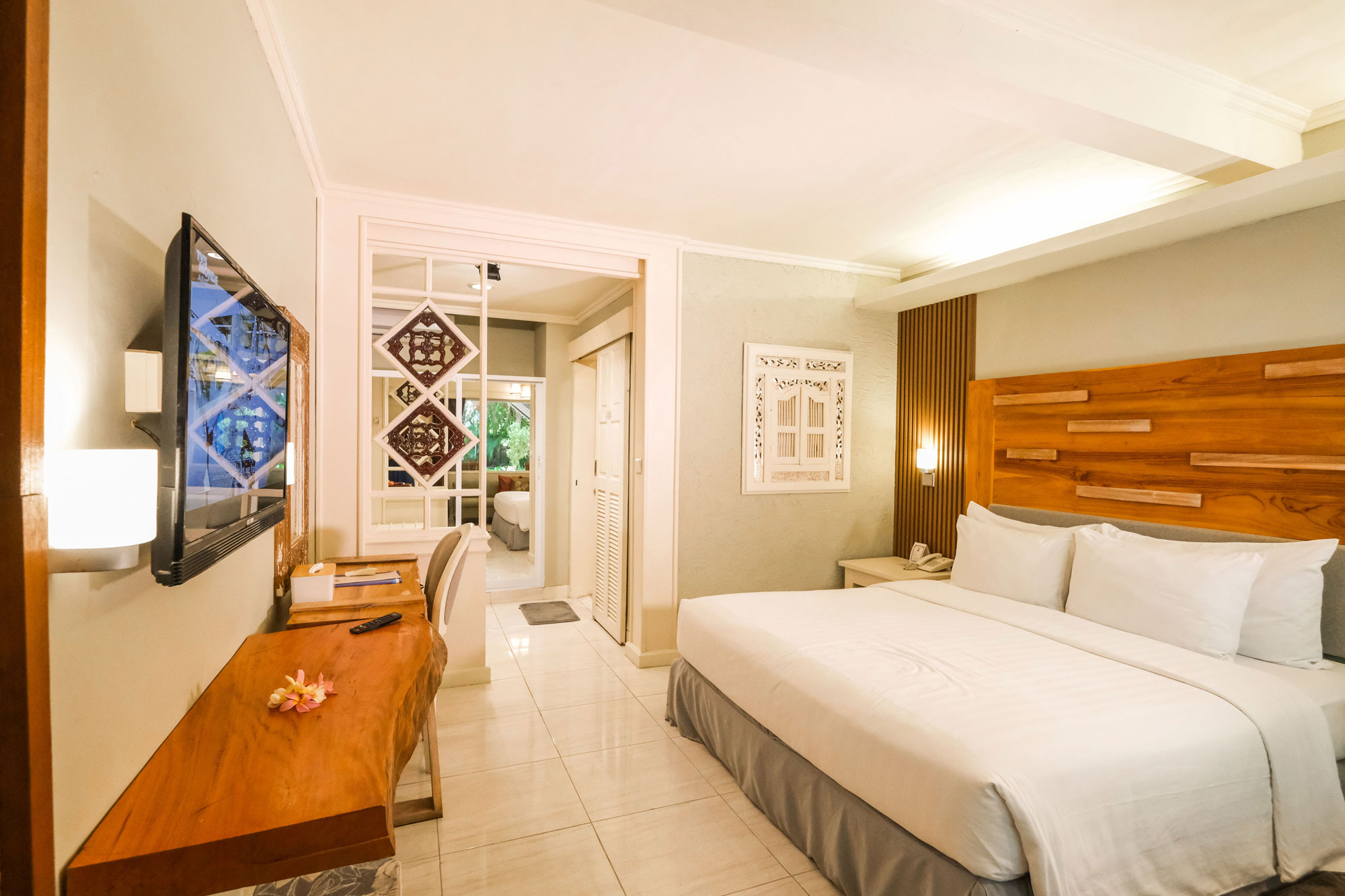 Sanur is also conveniently located close to all shopping area and other Tourism destination. With total land coverage of 1,5 hectares, constructions covers only 40% on the land with the rest dedicated to garden & open air facilities which should enables you to enjoy our warm weather and cooling sea breezes. Peneeda View houses a total of 56 rooms, 1 lobby, 1 beachside restaurant and 3 pools.